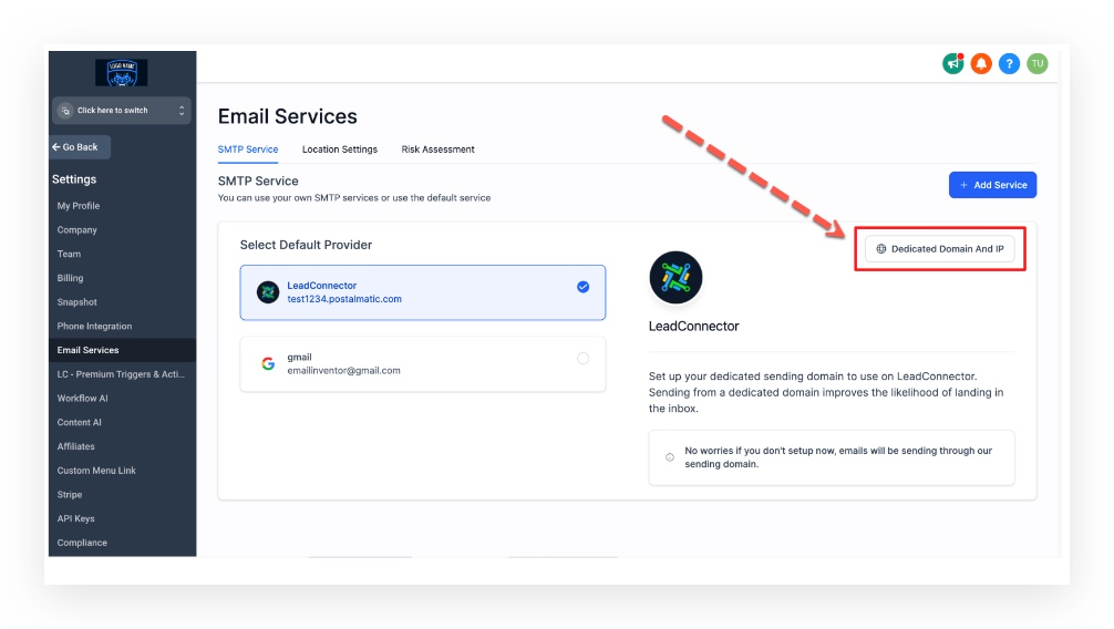Why it Matters? If you have an LC Email Dedicated Sending Domain (see point 1 above), you share the same Sending IP Address with all of HighLevel. Mailbox providers give a reputation to IP addresses, so this could negatively impact your sending, especially at high volume. A dedicated sending IP address helps you control more of your email-sending health to build your own IP reputation. This becomes more important when sending high-volume, especially 200k emails or more.