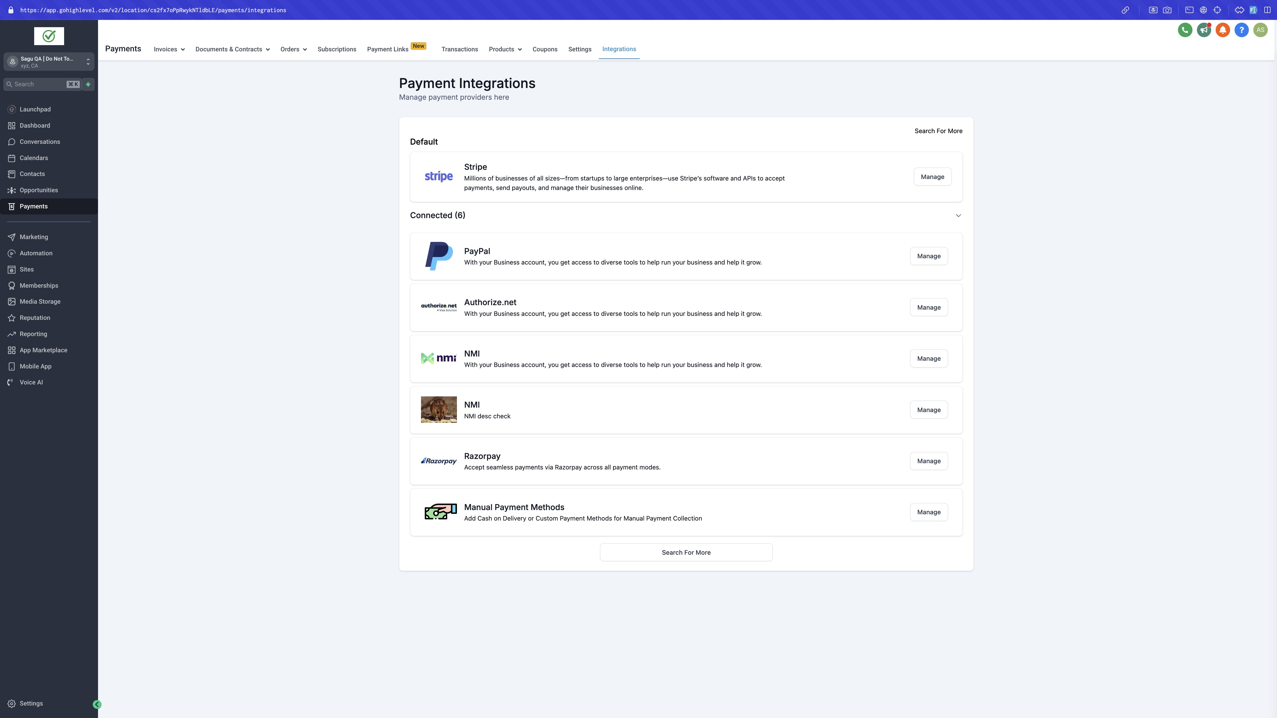 - Store owners can setup manual payment methods for their e-commerce stores at: Payment > Integrations > Manual Payment Methods.