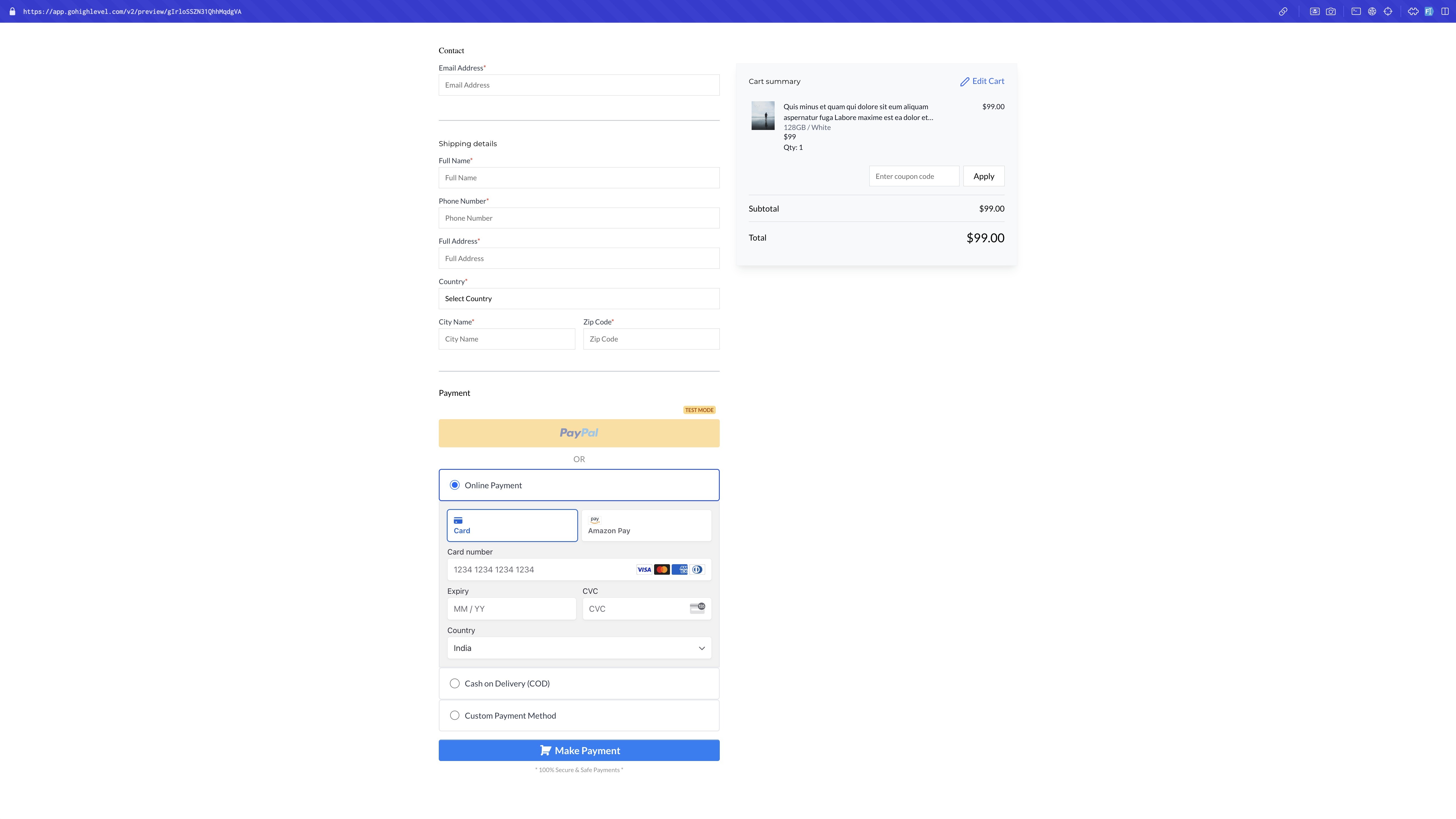 Checkout page preview: