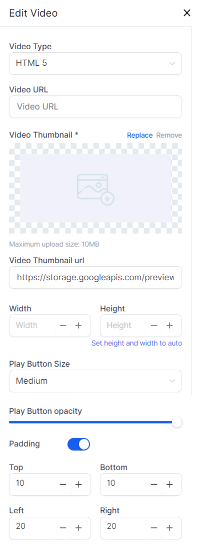 Width and Height: Adjust the size of your image using these fields. You can set specific pixel values or tick the box for 'Set height and width to auto' for automatic sizing based on the image's original proportions.