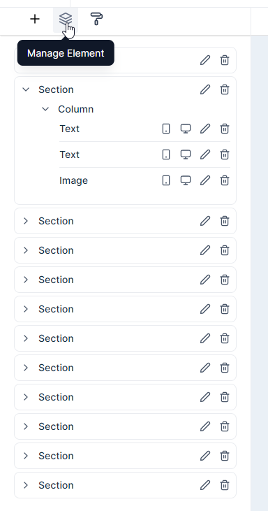 The 'Manage Elements' option gives an overview of all elements in your email, allowing you to select and adjust them easily.